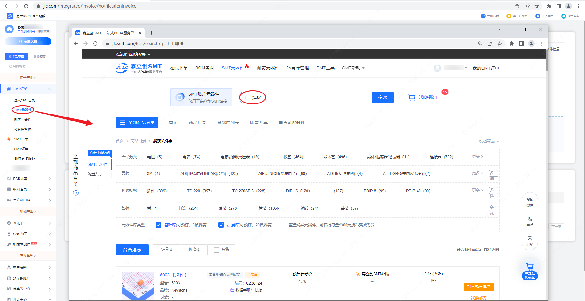 朋友们 嘉立创开放 手工焊接啦,只要是器件型号前面有"手工焊接"字样的,均可以下单选用。