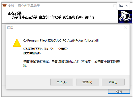 ④:安装下载好的小助手安装包时,提示找不到应用程序