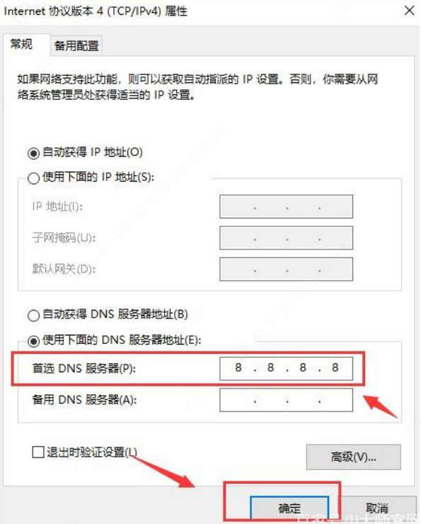 8.8.8.8,把8.8.8.8换成223.5.5.5即可,备用可不填,也可以和首选相同,点击确定即可。
