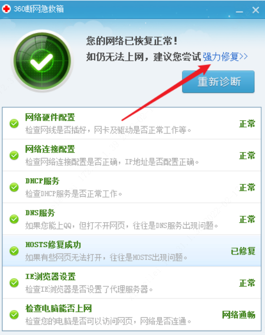 3. “强力恢复”,则点击“强力恢复”(恢复后需要客户电脑重启)