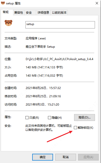 4. ”解除绑定“后点击确认,重新点击setup.exe文件安装