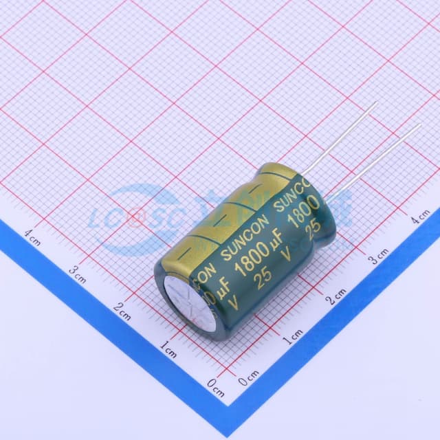 容值:1800uF,工作寿命:10000hrs@105℃,工作温度:-,电容体直径:16mm,电容体长度:25mm,等效串联电阻(ESR):22mΩ@100kHz,精度:±20%,纹波电流:2.1mA,脚间距:7.5mm,额定电压:25V