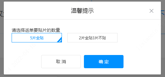 1.对于PCB数量在100和100片以上,系统会弹出“”返单要贴片的数量的页面,您根据需要选好数量。