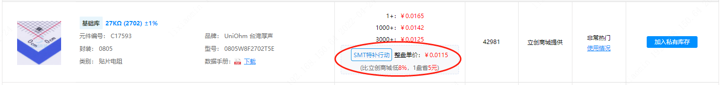 特补行动: 嘉立创SMT元器件特补行动,整盘购买私有库,比立创商城便宜5%-10%